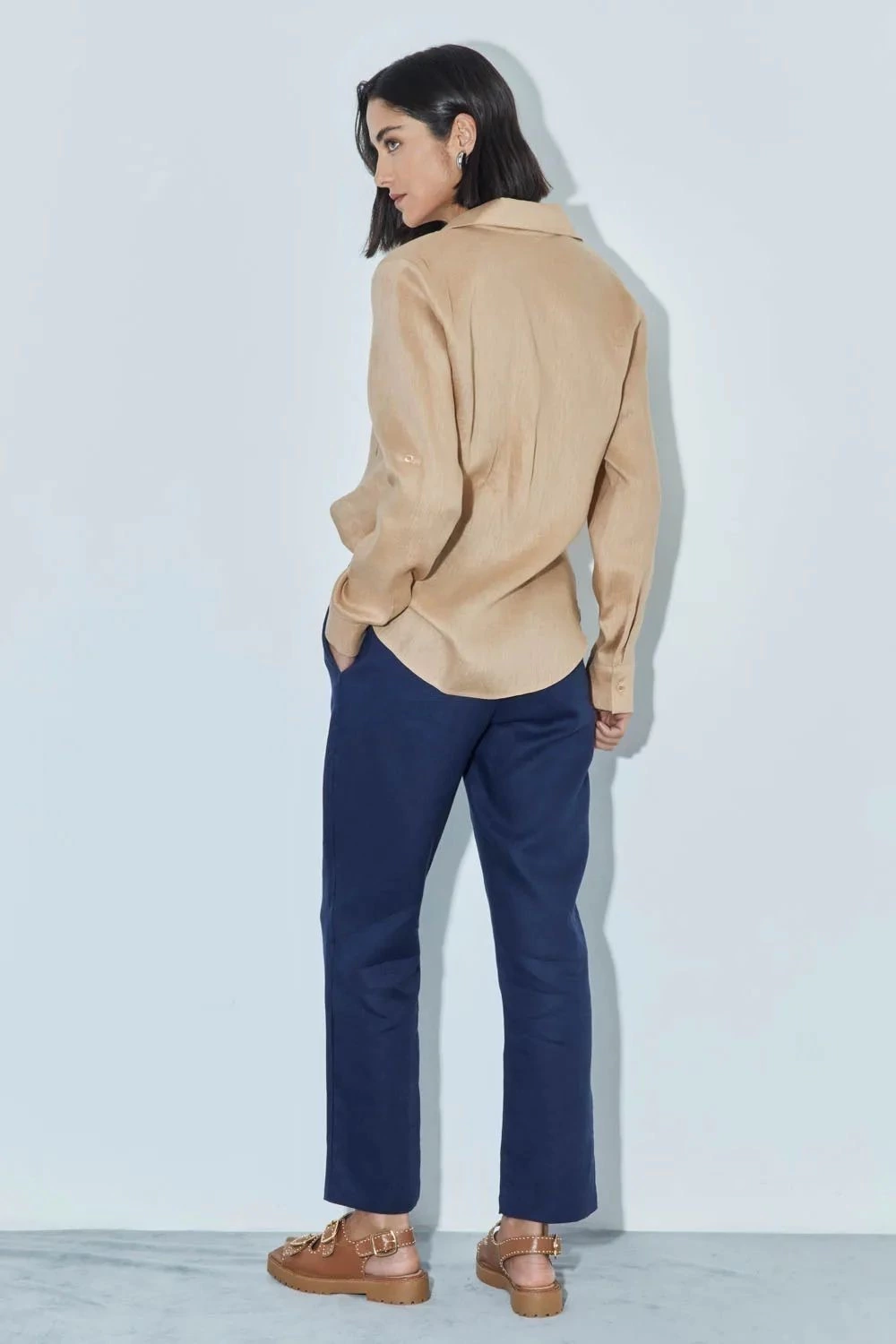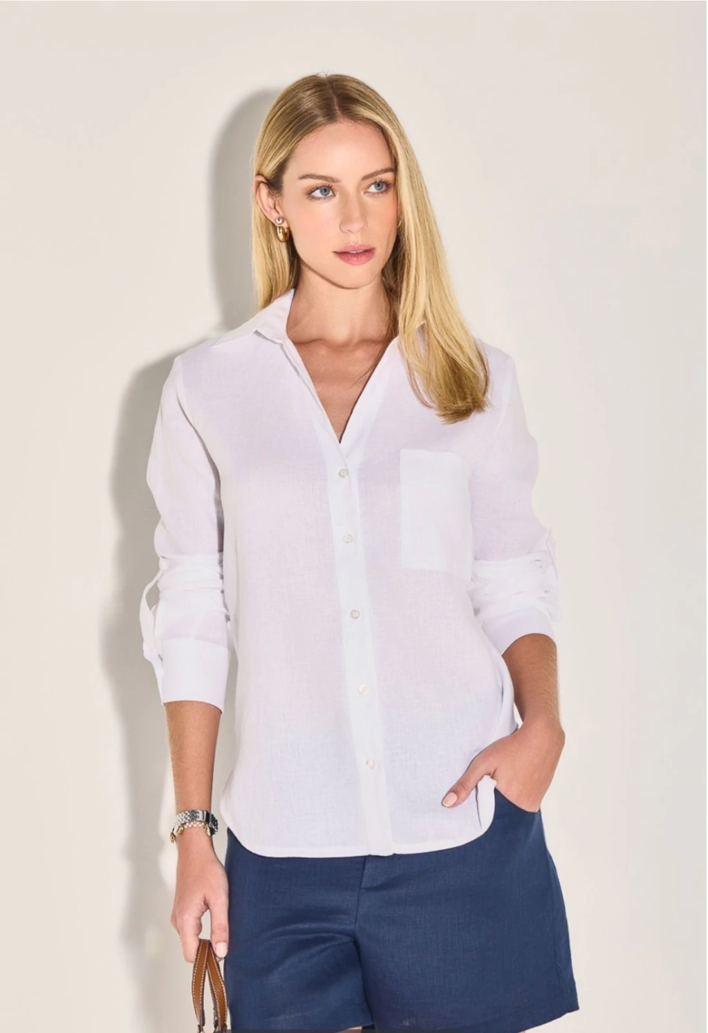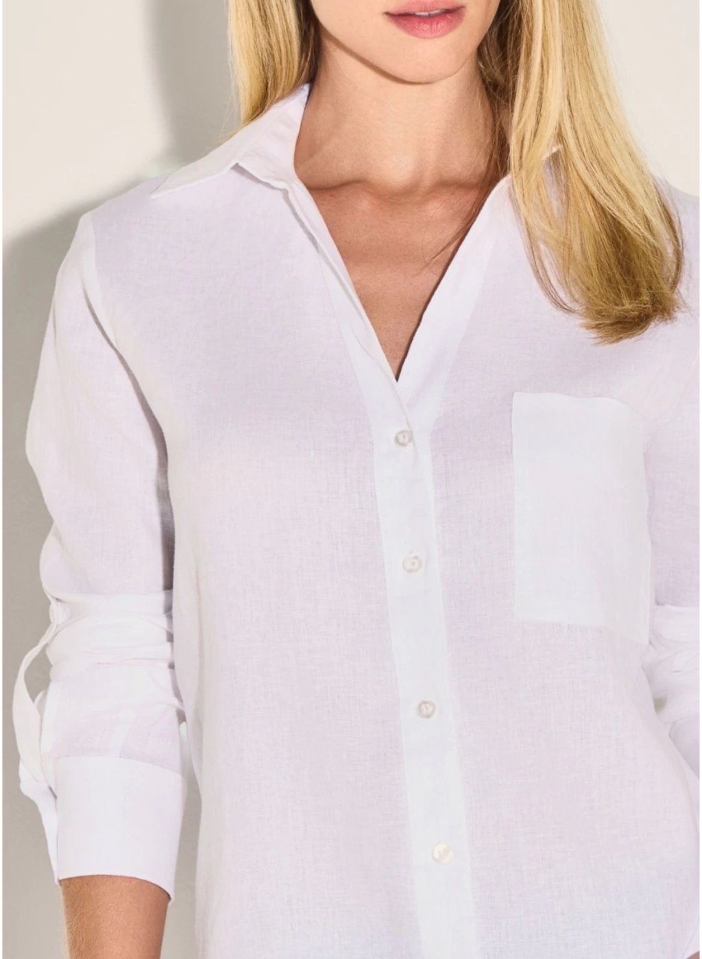 Camisa 100% linho, possui botões na vista e punhos. Modelo alongado com detalhe de bolso frontal.