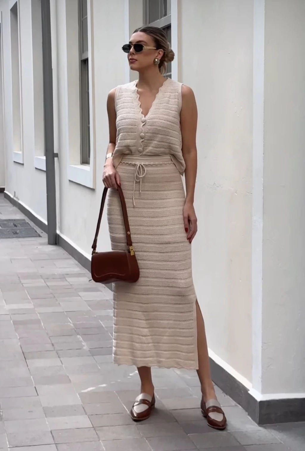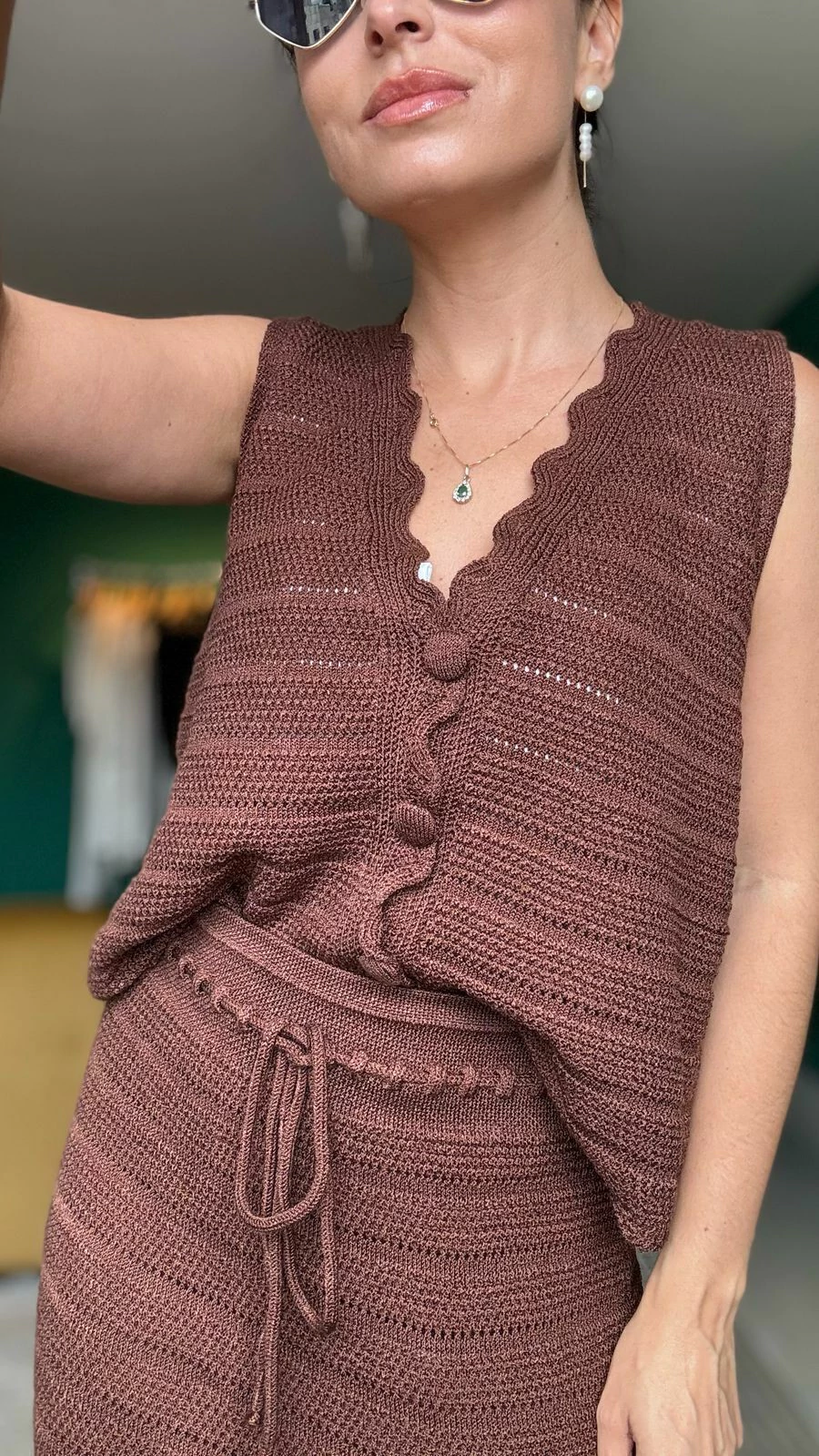 Conjunto composto por duas peças em modal premium. Blusa com fechamento em botões, gola v, modelo bem amplo. Saia com fendas laterais e ajuste na cintura. Versátil e confortável.